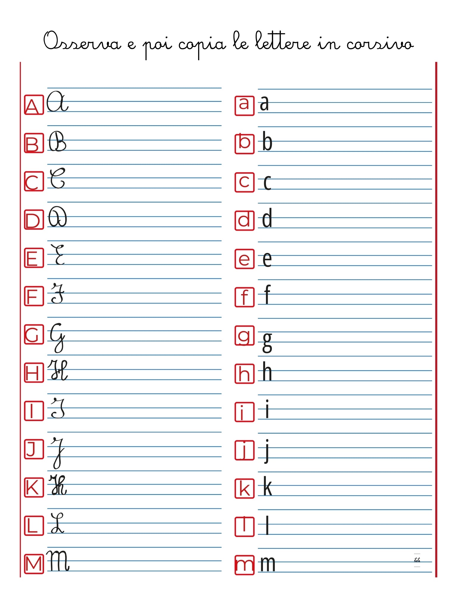 Lettere in corsivo da ricalcare con indicazione del punto di partenza ✏️