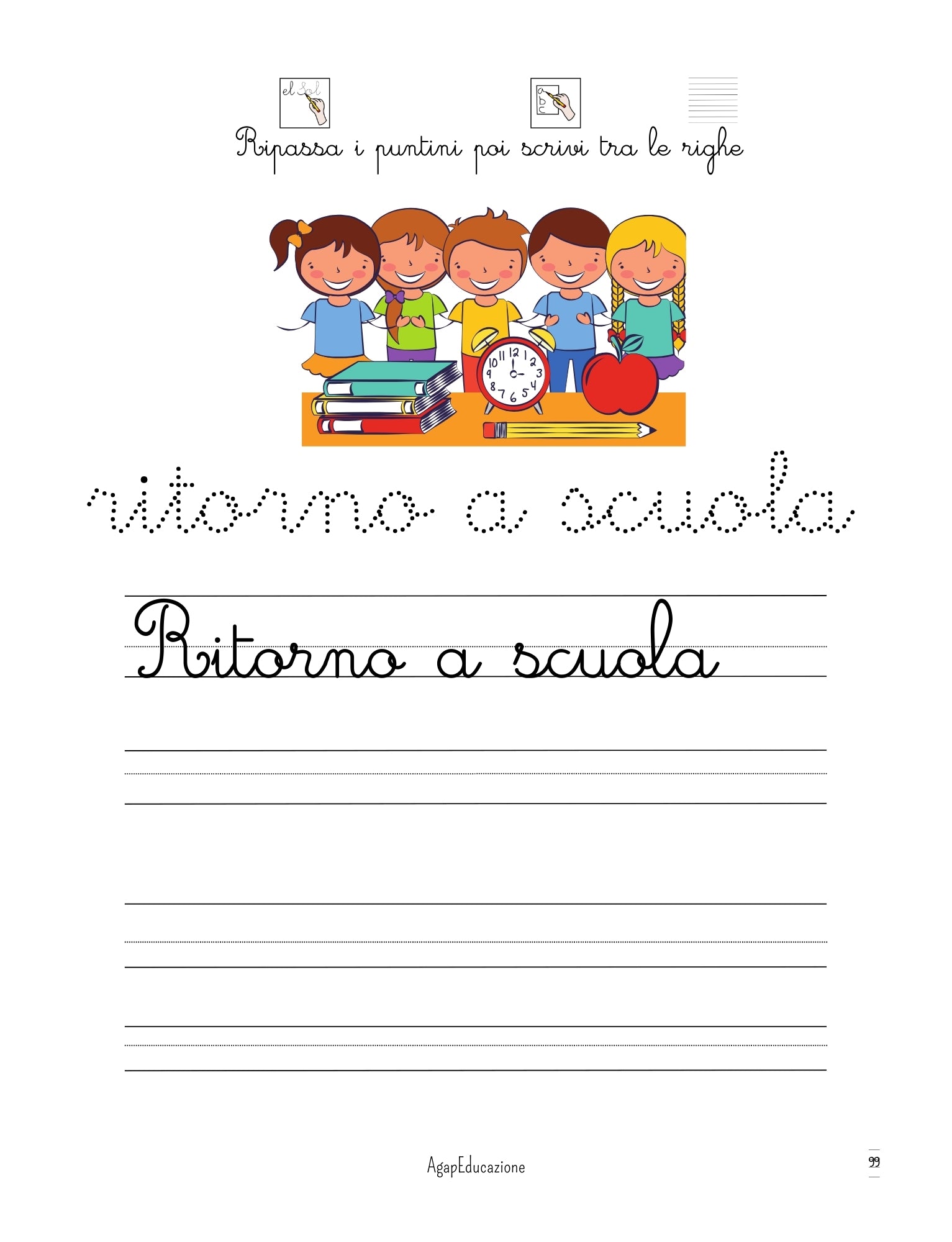 Questo libro è pensato per accompagnare bambini dai 5 anni in su nella scoperta e nella pratica del corsivo, partendo dai primi movimenti fino al perfezionamento della scrittura in righe.